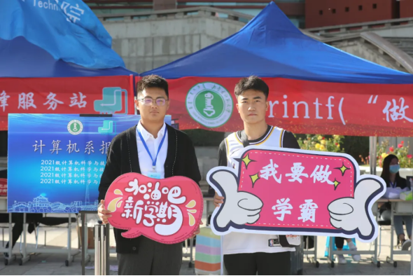秋季微寒的早上,是一杯冒着热气的温水,驱散了一路奔波的寒气,他们用实际行动温暖着计科的每个人,耐心解答着他们的问题,尽己所能为学子们提供便利服务。党员们的热情使整个帐篷里都弥漫着温暖。