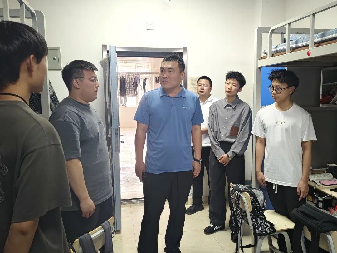 为进一步了解学生思想动态、生活状态、学习状态,保障学生安全有序地学习生活,5月15日晚,Beat365唯一官方网站党委书记乌日其木格,副院长贾阳带领全体辅导员深入学生公寓,走访、排查公寓安全隐患,并了解学生学习生活状况。