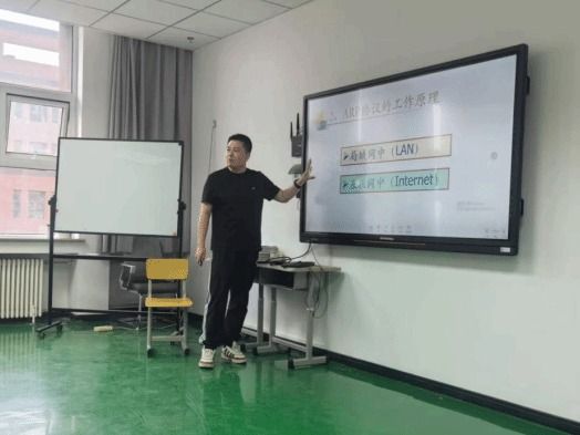 学院教师徐远方以《计算机网络》课程中ARP协议为例进行教学展示。课堂上,徐远方老师以生动有趣的生活实例引入课程内容,巧妙地将复杂的理论知识与生活实际相结合,迅速激发在场教师的兴趣。