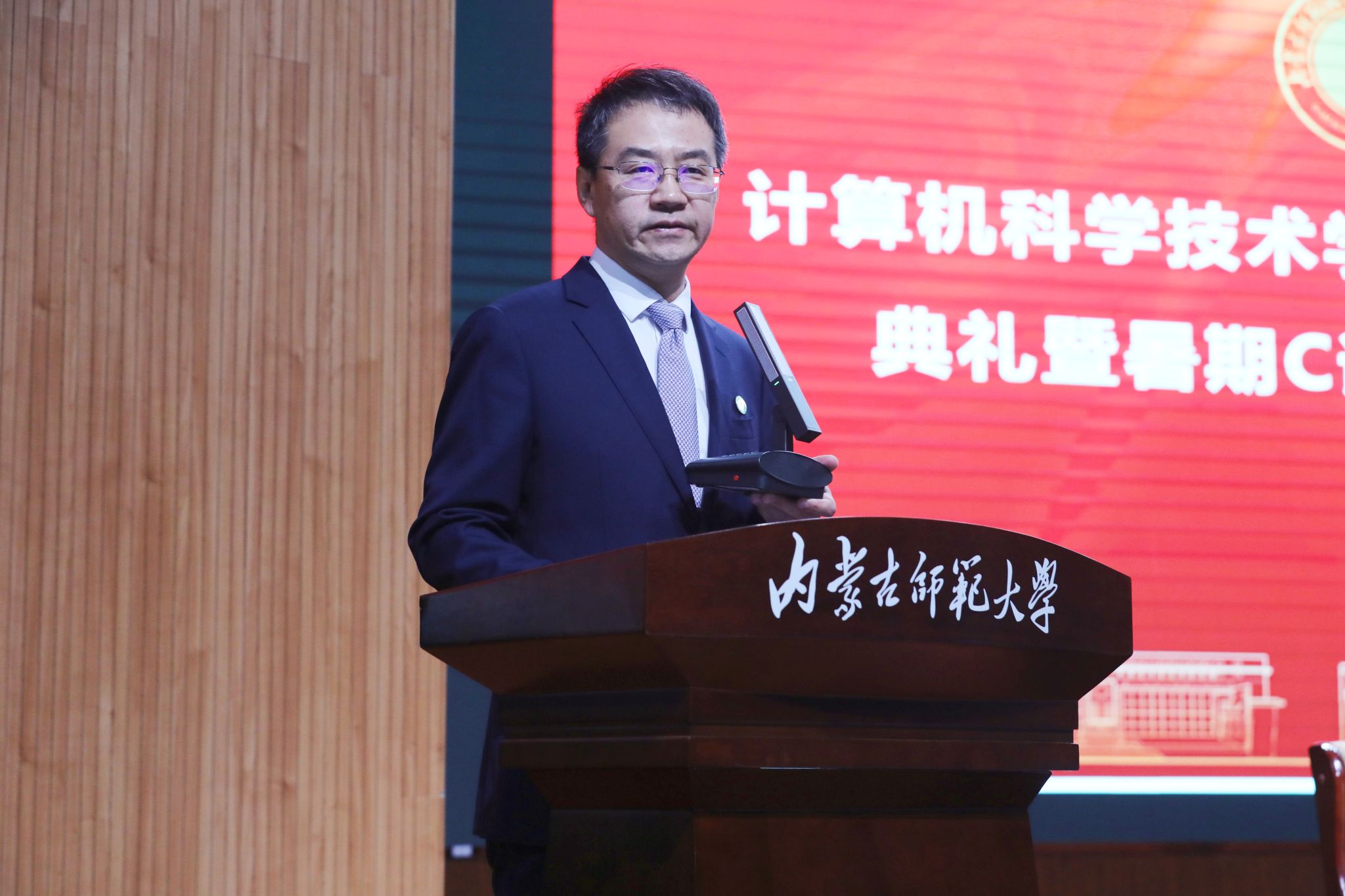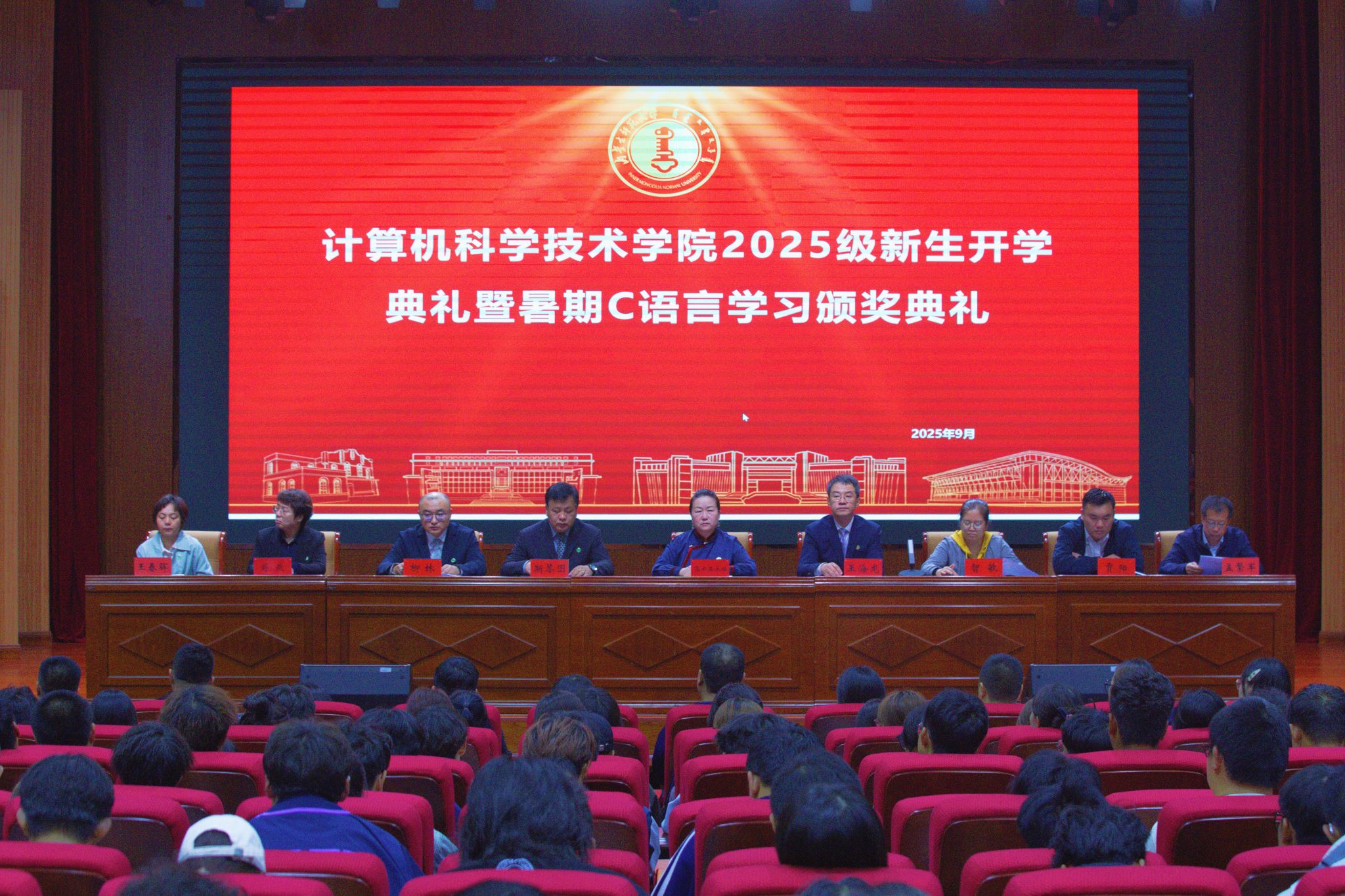 9月27日,Beat365唯一官方网站举行2025级本科生开学典礼暨暑期C语言学习颁奖典礼在盛乐校区图书馆报告厅举行,共迎358名2025级本科新生。学院党委书记乌日其木格,院长王海龙,副院长斯琴图、智敏、柳林、贾阳出席开学典礼,各系部负责人、辅导员、新生班主任参加开学典礼,典礼由副院长柳林主持。