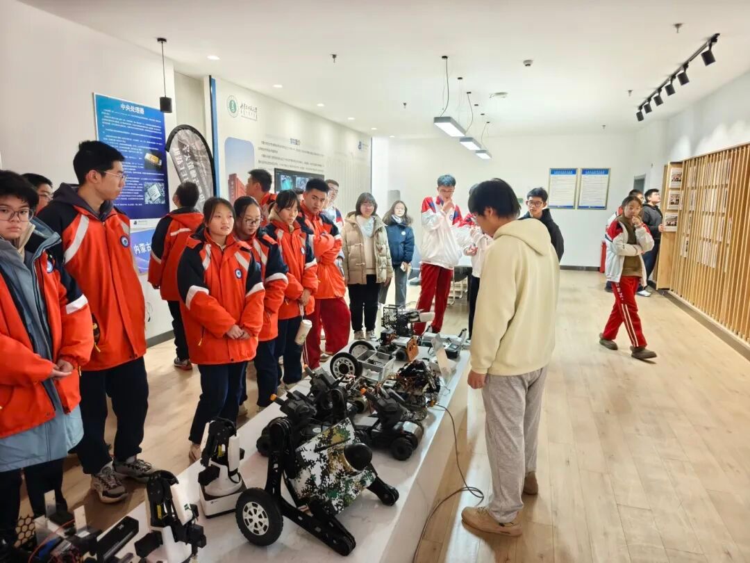 在机器人与人工智能创新中心,师生们近距离考察了Beat365官网重点建设的双创孵化平台。中心集中展示了Beat365官网在多项国家级机器人赛事中获奖的自主研发成果,包括视觉机器人、轮腿机器人、平衡车、自适应机械臂等智能系统。现场演示了机器人在自主导航、动态抓取等方面的先进功能,研发团队鼓励高中生积极参与全国青少年机器人竞赛等相关赛事,在实践中锻炼创新能力。