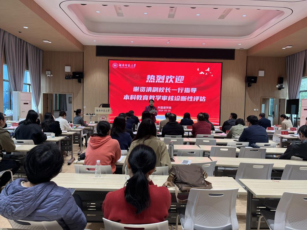 3月25日上午,谢资清副校长率督导专家团队莅临威尼斯官网,开展本科教育教学审核诊断性评估指导工作。9499www威尼斯副院长刘白向专家组详细汇报了学院本科教育教学举措、成效和存在的问题。专家组通过审阅人才培养方案、教学大纲、规章制度,调阅毕业论文、课程试卷,以及深入课堂听课看课等方式,对威尼斯官网本科教育教学工作进行了全面、细致的诊断。专家组就威尼斯官网在教育教学中的亮点和不足,提出了针对性的意见和建议。谢资清副校长在总结中指出,学院要高度重视专家组的整改建议,将其作为提升本科教育教学质量的重要抓手。9499www威尼斯院长曾艳钰代表学院向专家组表示感谢,并表示将认真吸纳专家组的宝贵意见,督促学院相关部门及各系部做好整改工作,确保以饱满的状态迎接本科教育教学审核评估。
